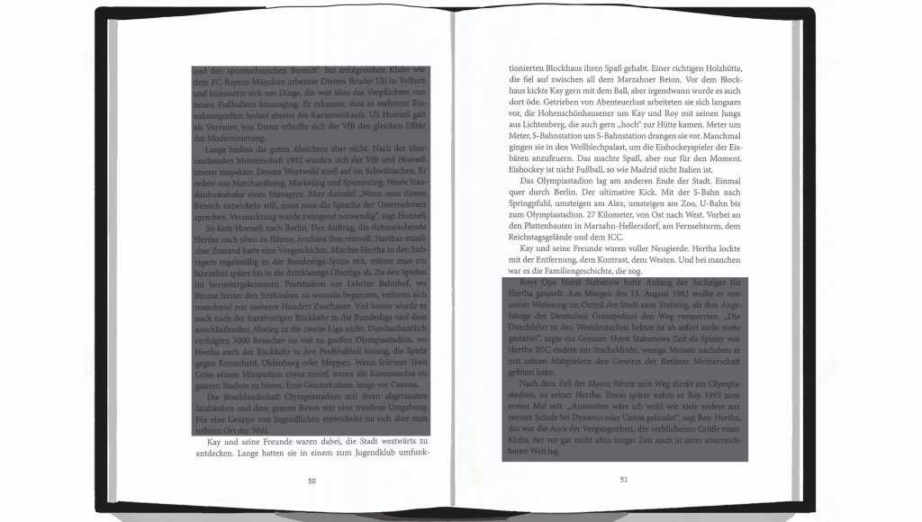 Das Olympiastadion lag am anderen Ende der Stadt. Einmal durch ganz Berlin. Der ultimative Kick. Mit der S-Bahn nach Springpfuhl, umsteigen am Alex, umsteigen am Zoo, U-Bahn bis zum Olympiastadion. 27 Kilometer, von Ost nach West. Vorbei an den Plattenbauten in Marzahn-Hellersdorf, am Fernsehturm, über den Reichstagsgelände und dem ICC. Kay und seine Freunde waren voller Neugierde. Hertha lockte mit der Entfernung, dem Kontrast, dem Westen. Und bei manchen war es die Familiengeschichte, die zog.