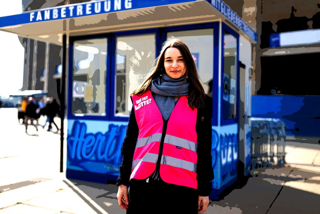 Doch nicht nur im und rund um das Stadion zeigen die Helferinnen und Helfer Präsenz, auch auf den Vorplätzen der Spielstätte bzw. an den Bahnstationen stehen sie als Ansprechpersonen zur Verfügung und engagieren sich tatkräftig.